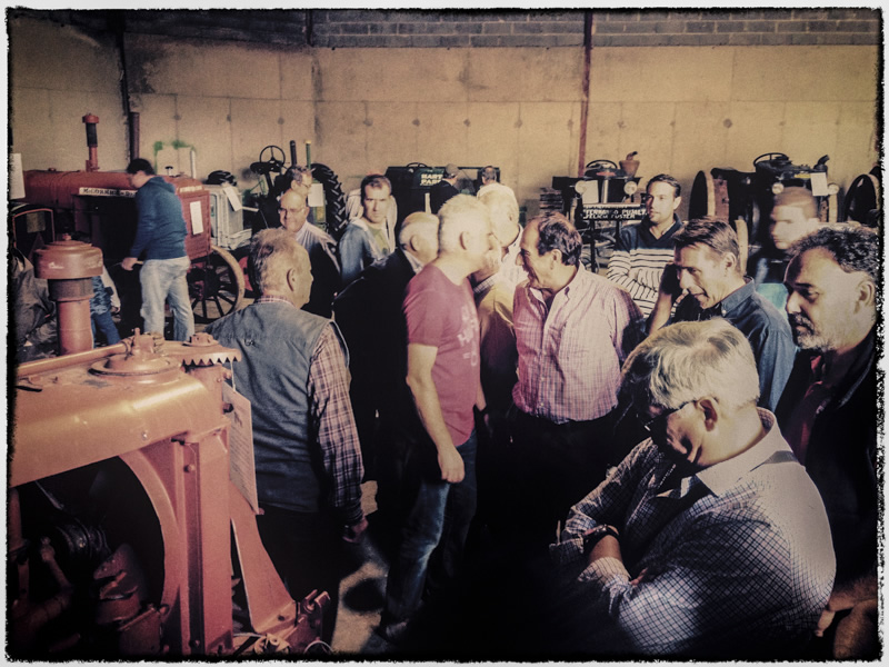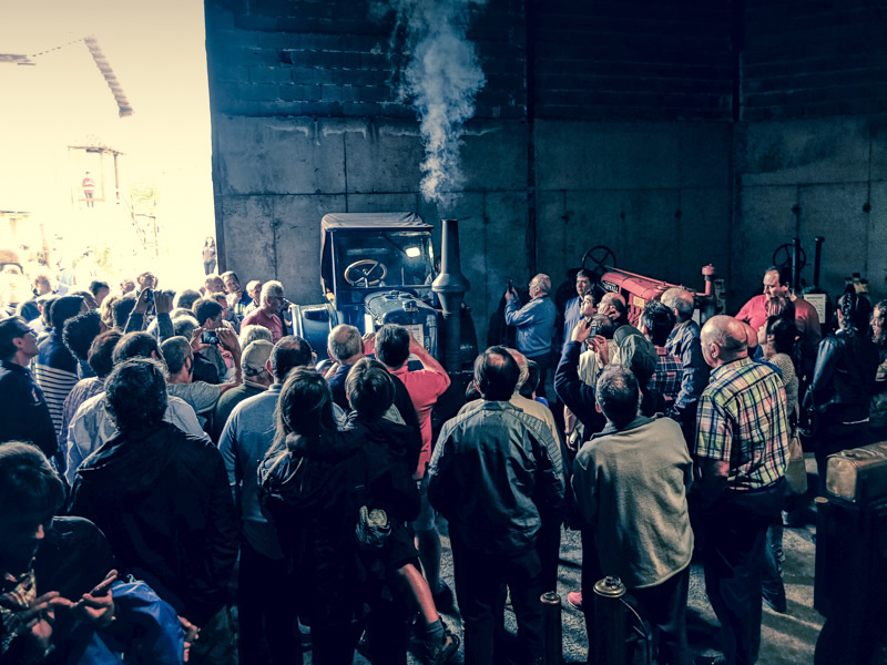 la maravilla de unos tractores viejos y antiguos petardeando y procedentes de todos los continentes imaginables. Sólo tienen que arrancar para que uno se quede clavado en el suelo ante ellos. No queda otra solución …