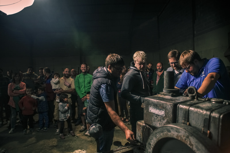 Ya sea precalentando con el soplete y arrancándolos con la manivela, o con cinco hombres al